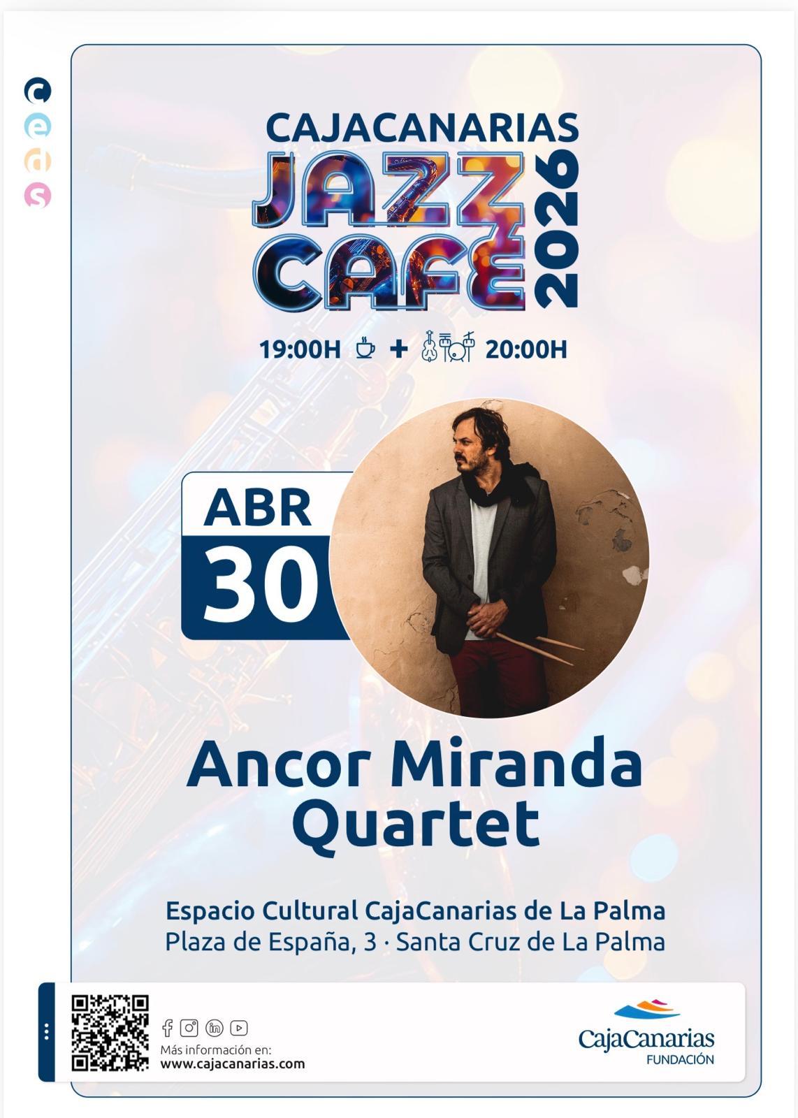 El Espacio Cultural CajaCanarias de Santa Cruz de La Palma acoge una nueva cita del ciclo Cajacanarias Jazz Café 2026 con la actuación de Ancor Miranda Quartet.