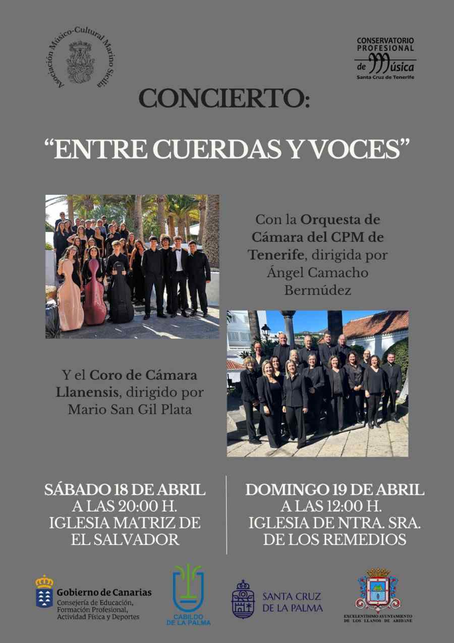 La Isla de La Palma acoge el concierto Entre cuerdas y voces, una propuesta musical que reúne a la Orquesta de Cámara del Conservatorio Profesional de Música de Tenerife y al Coro de Cámara Llanensis.