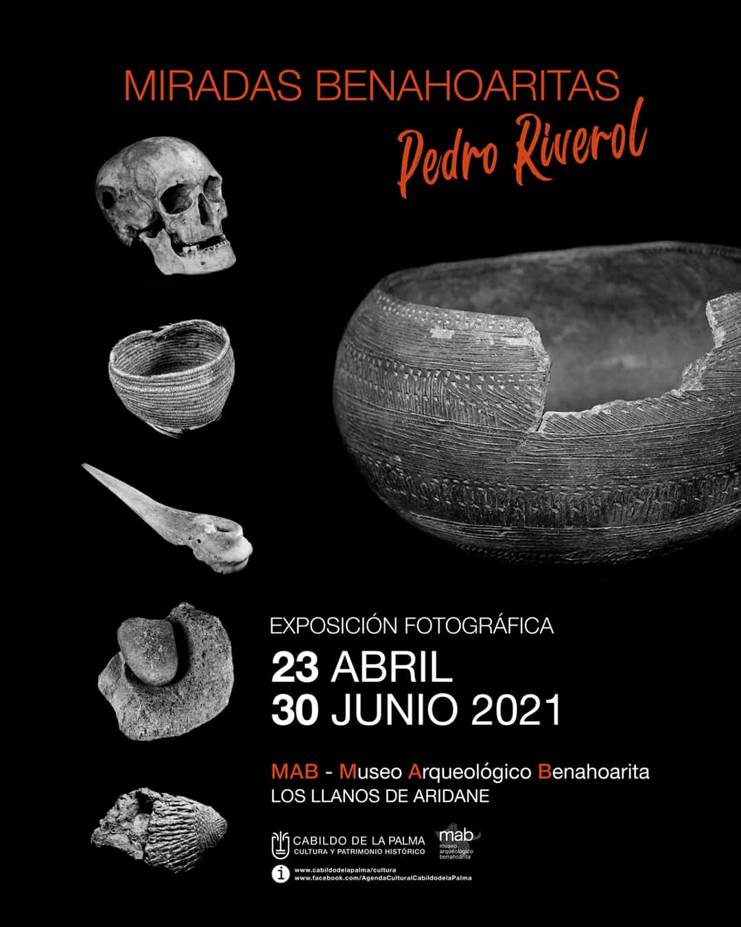 Miradas benahoaritas’ es una selección de 38 imágenes en blanco y negro del reconocido fotógrafo palmero, Pedro Riverol, que tienen como protagonistas distintos elementos de la cultura indígena insular. Además, junto a las instantáneas se muestran en vitrinas algunos de los restos arqueológicos fotografiados en su momento por el artista.