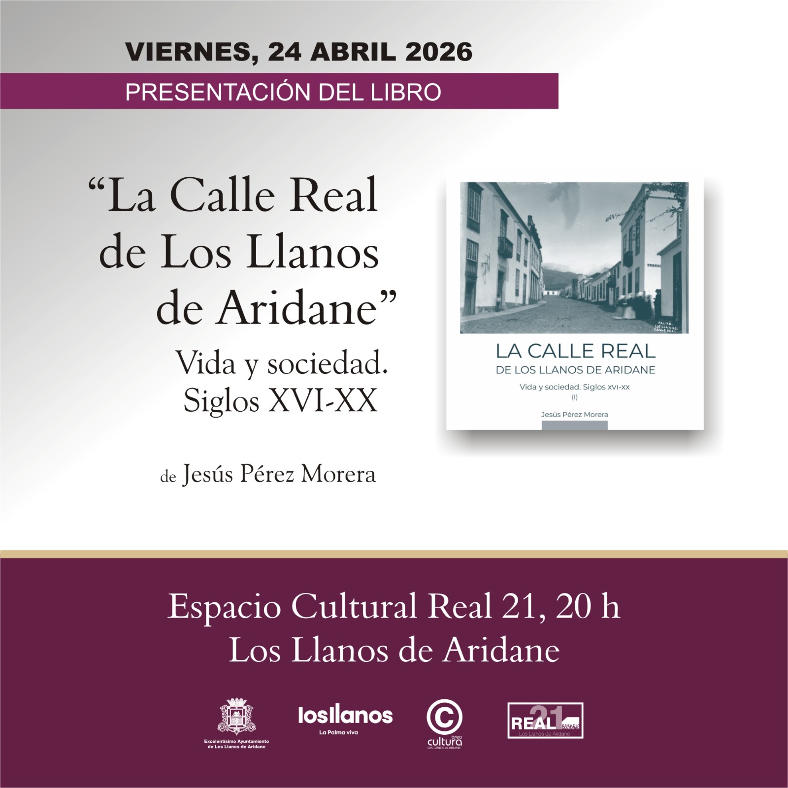 El Espacio Cultural Real 21 acoge la presentación de esta obra de Jesús Pérez Morera, un recorrido por la evolución histórica, social y urbana de la Calle Real de Los Llanos de Aridane a lo largo de varios siglos, poniendo en valor su papel como eje fundamental en la vida del municipio.